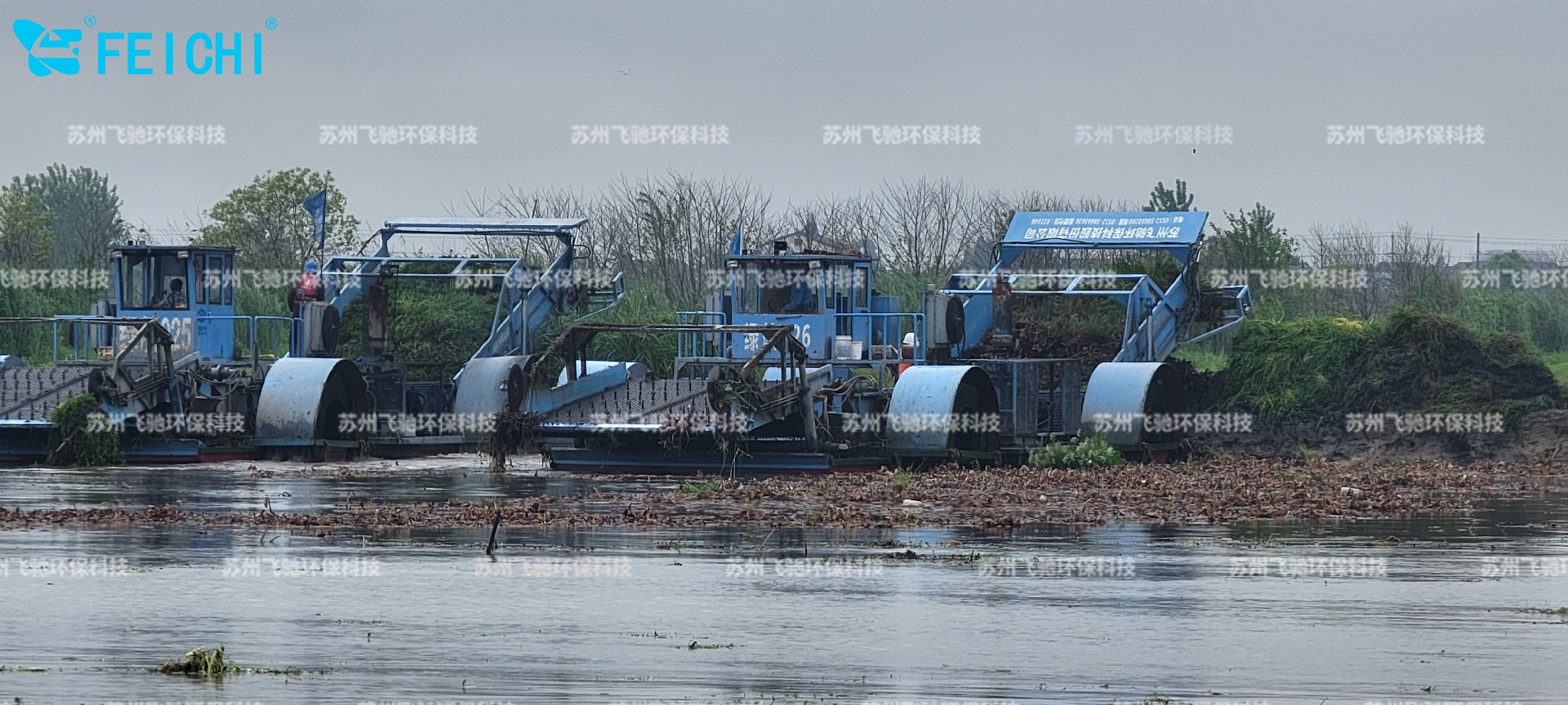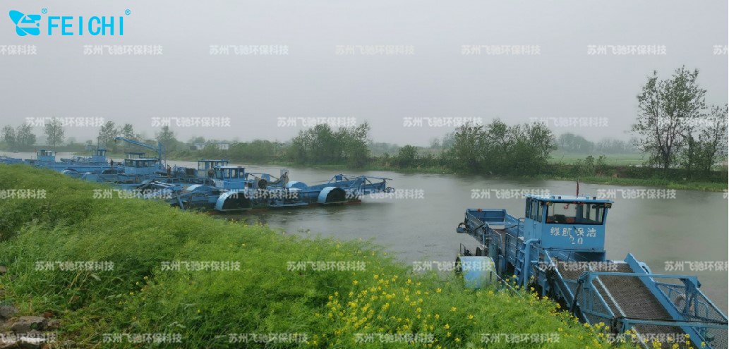 水域保潔供應(yīng)商:飛馳環(huán)保生產(chǎn)打撈船,割草船,浮萍收集船